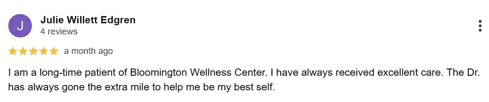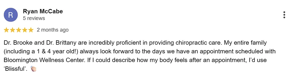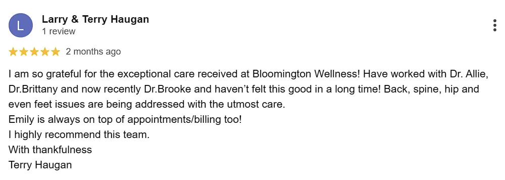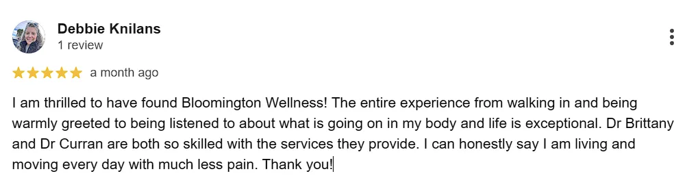 *Disclaimer: All medical procedures and treatments performed by Bloomington Wellness & Rehab have success and failure rates. Success stories and reviews should not be use as fact for the effectiveness of our treatments.
